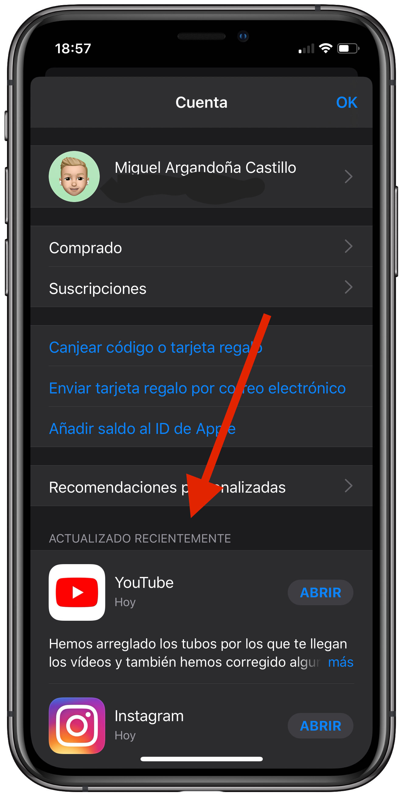 Es por eso que quizás te aparezca de vez en cuando una notificación en el icono de tu perfil en la App Store. Esta notificación nos indica que tenemos actualizaciones disponibles y que es ahí donde debemos entrar para hacerlo.
