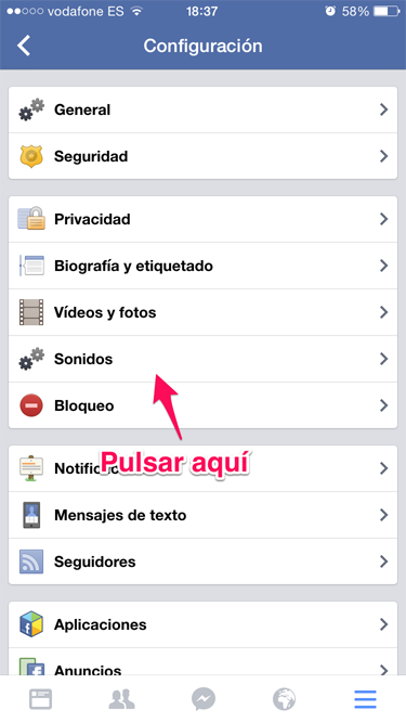 CÓMO DESACTIVAR EL SONIDO DENTRO DE LA APP DE FACEBOOK