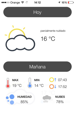 Al tocar sobre cada uno de las jornadas podremos acceder a información detallada y útil como humedad, hora del amanecer y puesta de sol, temperatura máxima y mínima. De hecho, son raras las ocasiones que estamos interesados en obtener más información de la que nos proporciona Tempo… ¿verdad?