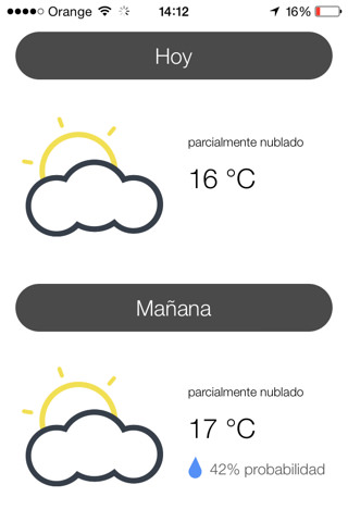 En cuanto a las temperaturas que nos aparecen en primera estancia, en la visualización general de todos los días, tenemos que decir que es la temperatura media que hará en todo la jornada. Viendo esta, nos podremos hacer una idea de si hará calor, frio… . Para ver las máximas y las mínimas, deberemos pulsar en el día que deseemos ver para saber más sobre ellas. Esta app no nos proporcionará la temperatura que hace en el momento.