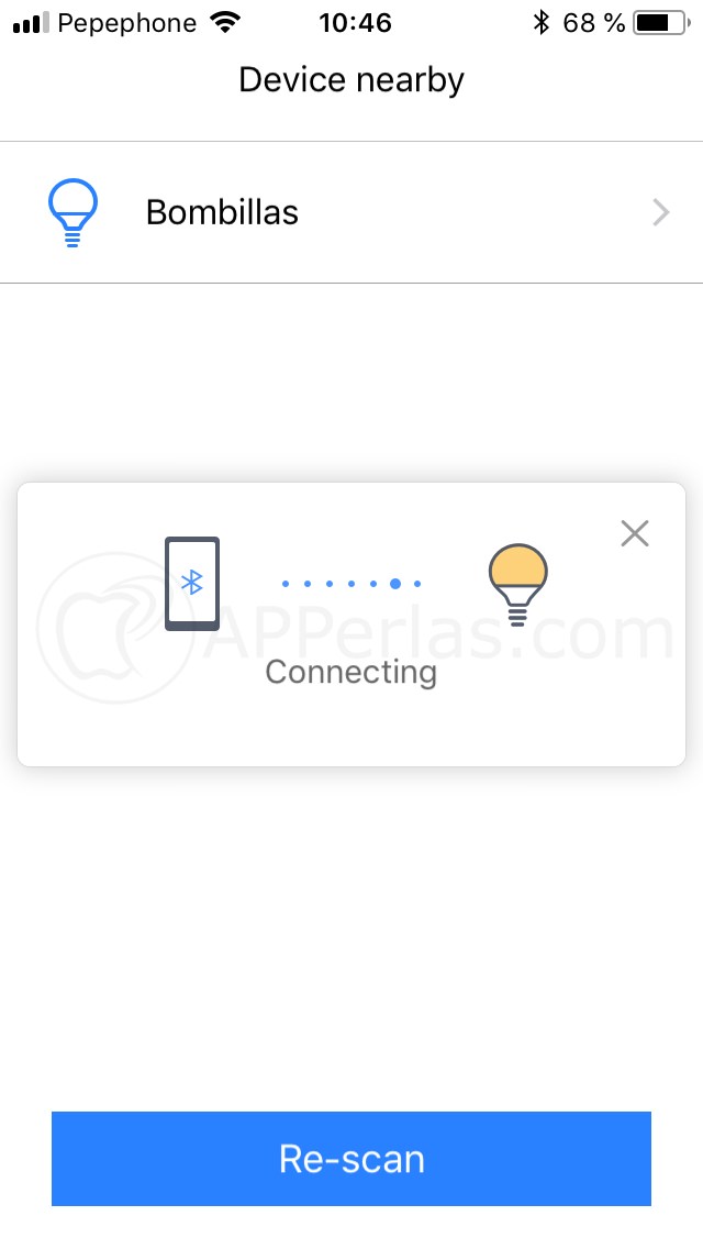 Es tan sencillo como acceder al iPhone, activar el Bluetooth y acceder a la app. Esta se pondrá escanear hasta que la encuentre. En ese momento, podemos cambiar el nombre de la bombilla. Esto es interesante, sobre todo, si tenemos más de una bombilla Minger tipo en casa.