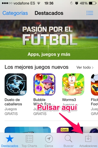 Por lo tanto, nos dirigimos a la App Store. Una vez dentro, debemos ir a la última pestaña, que es la de «Actualizaciones».