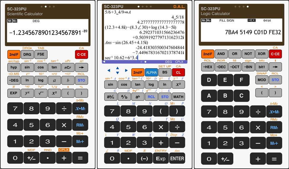 El SC-323PU es una calculadora multifuncional. Está diseñada de tal manera, que simula los aspectos visuales y operativas de una verdadera calculadora de bolsillo, de manera que el usuario se hará inmediatamente con su interfaz.