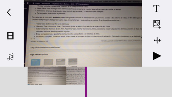Pero además de todo esto, MoviePro posee unas grande funciones de edición con los que podremos acceder a dos editores de vídeo, un Mini Editor para clips de vídeo individuales y un editor completo para trabajar con varios clips al mismo tiempo y para gestionar proyectos. En ambos editores podremos…: