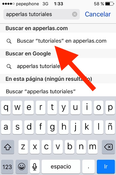 ¿Y para que sirve eso?… Pues sirve para poder buscar, desde la barra de navegación de Safari, cualquier contenido dentro de una web concreta.