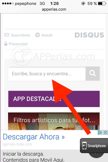 En APPerlas, dada la interfaz que tenemos para dispositivos móviles, no podréis configurarlo para hacer búsquedas rápidas en la web, a no ser que activéis la versión clásica de la web, accedáis a un artículo y encontréis el cuadro de diálogo para buscar contenido.