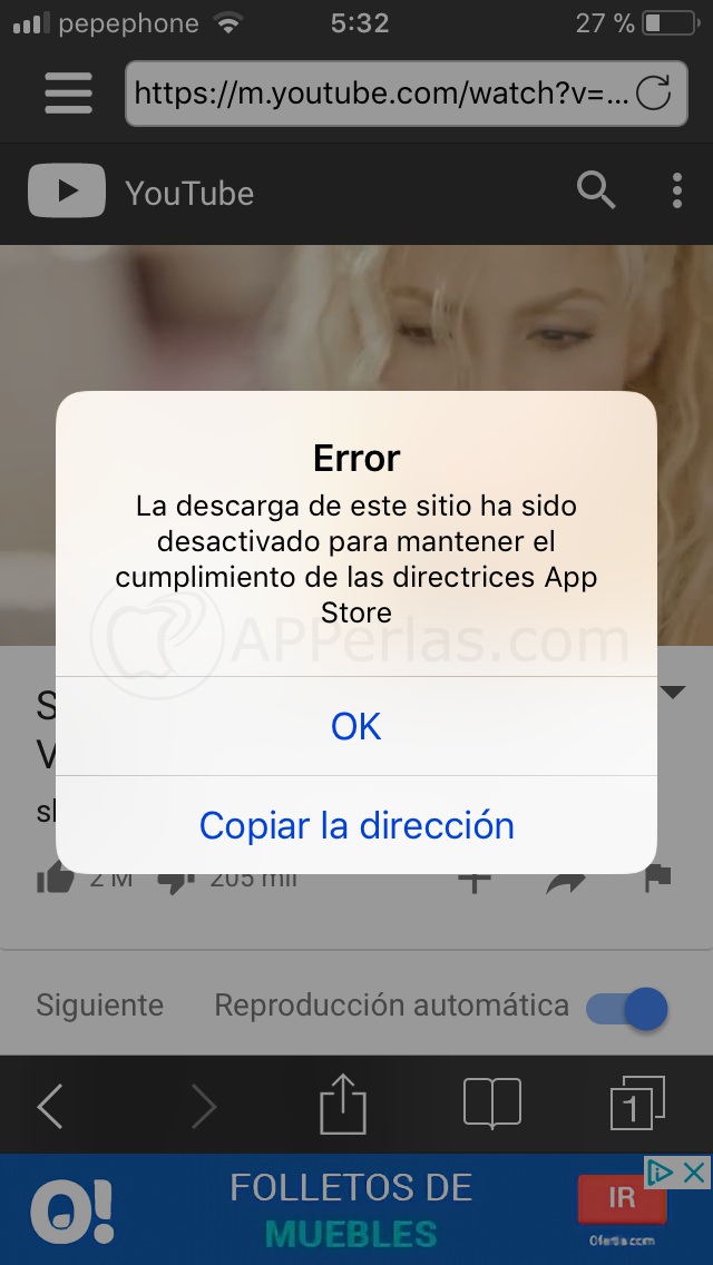 Si nos avisa de que no puede ser descargado por incumplimiento de las directrices de la App Store, deberemos pulsar en el botón «Copiar la dirección«.