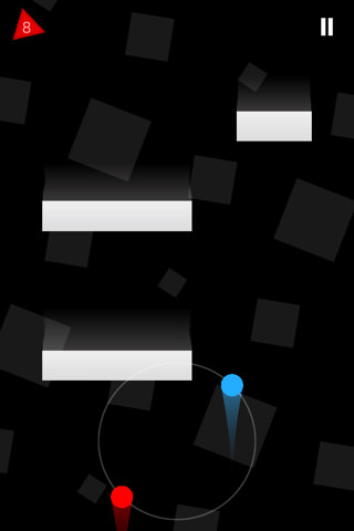 Lo que debemos hacer es posicionar nuestros pulgares, de ambas manos, uno en cada una de las partes inferiores de la pantalla del dispositivo. Al pulsar en cualquier lado, veremos como nuestros dos circulitos de colores giran en circulo. Con este simple giro, deberemos sortear todos los obstáculos que nos irán apareciendo.