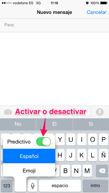 Con esta opción, podremos activar y desactivar el teclado predictivo siempre que queramos y además directamente desde el teclado, sin necesidad de acceder a los ajustes de nuestro iPhone, iPad y iPod Touch.