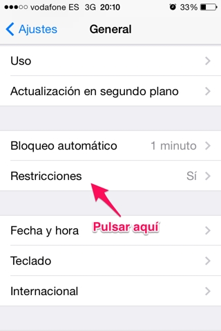 Dentro de «General» nos dirigimos a la pestaña «Restricciones».