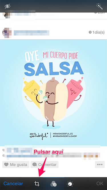 Tendremos que recortar todos los márgenes en los que aparece la app y dejar tan solo la imagen que queremos guardar. Terminado, pulsamos sobre el botón «Ok», para guardar los cambios y con ello nuestra foto.