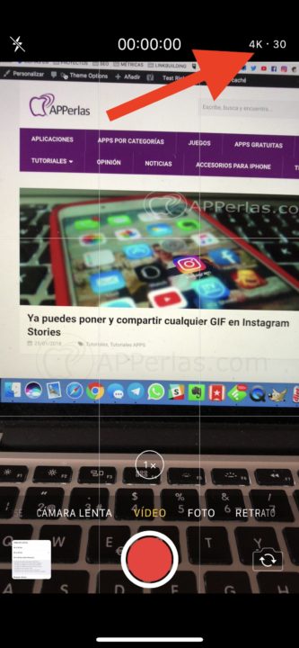 Opción de grabar en 4k en iPhone