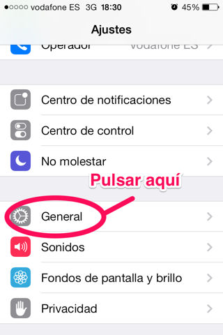 Lo primero que tenemos que hacer es entrar en «Ajustes«. Una vez que estamos dentro, nos dirigimos hasta la pestaña que pone «General«.