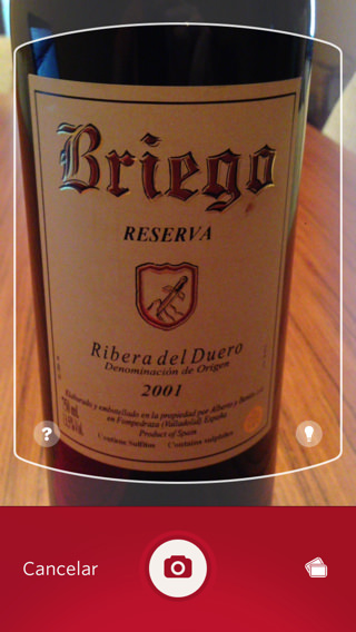 Pero si lo que queremos es saber toda la información y opiniones sobre algún vino que tengamos delante, deberemos hacer una captura de su etiqueta usando la opción para ello que nos aparece en el menú inferior.