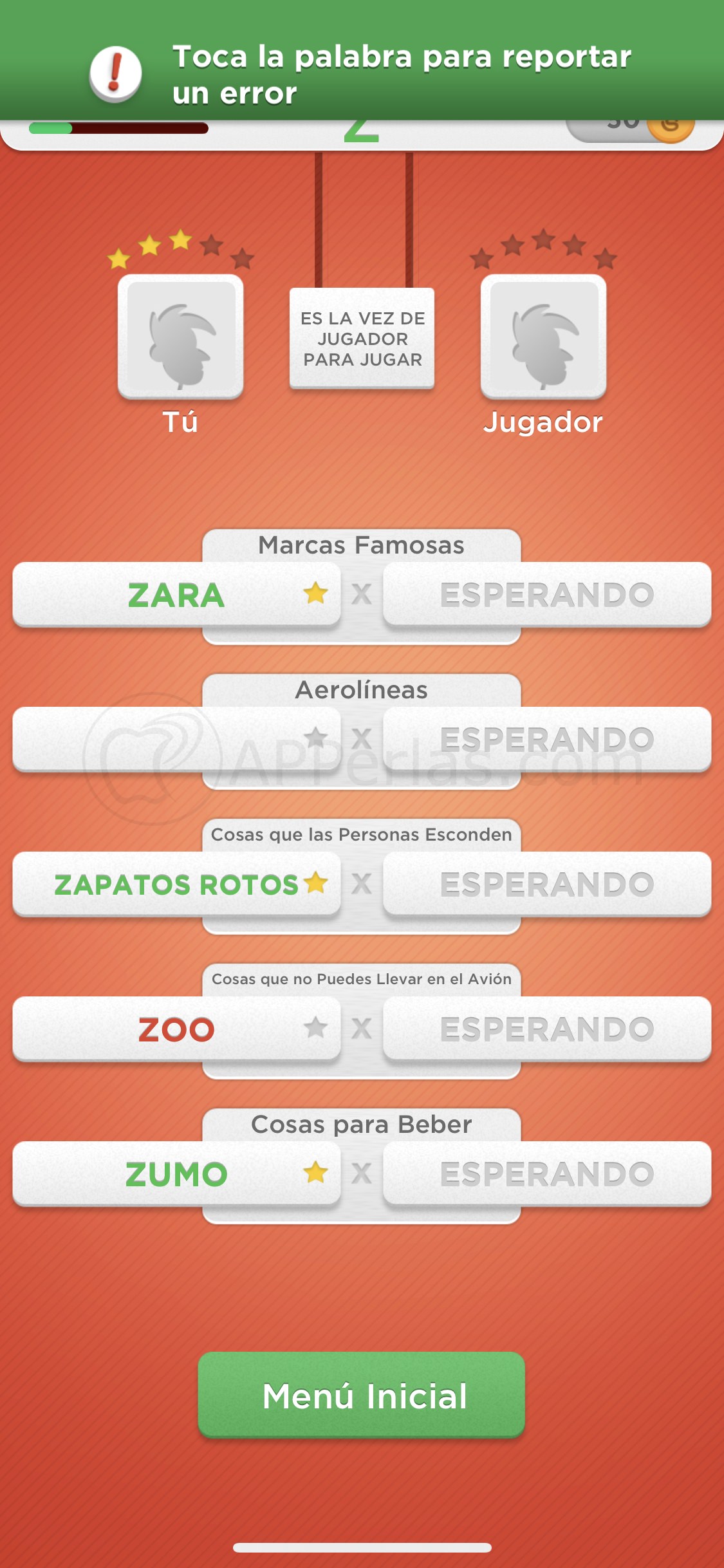 Tras acabar la partida, esta será lanzada para que otro jugador pueda jugarla. En cuanto conteste a las categorías, recibirás una notificación de los resultados de la misma.