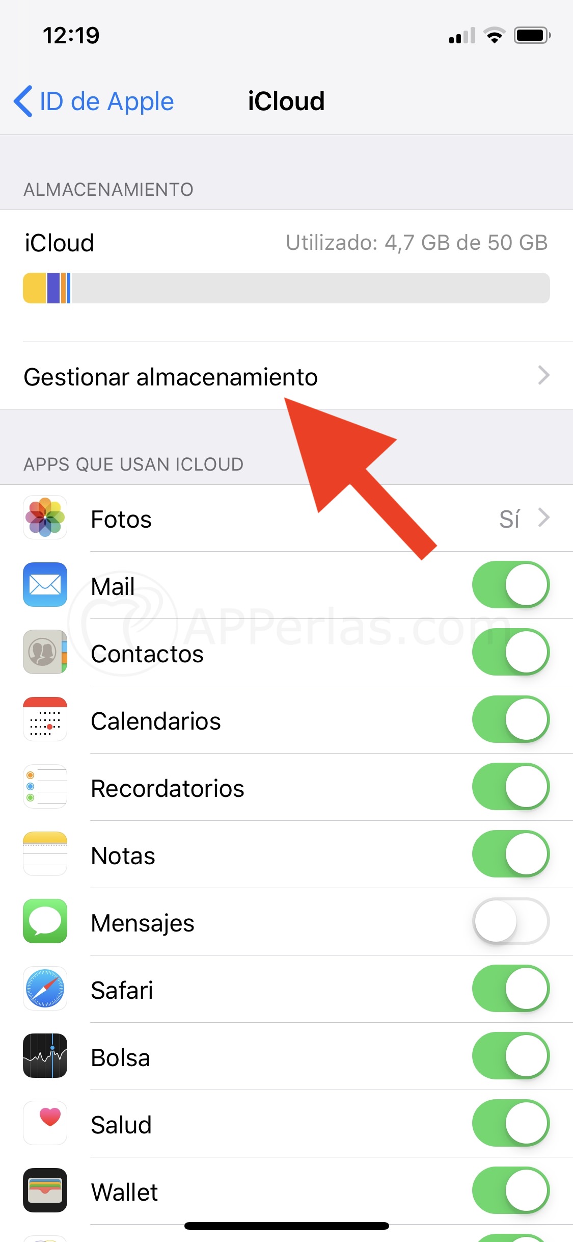 Ahora accederemos a la opción «Gestionar almacenamiento».