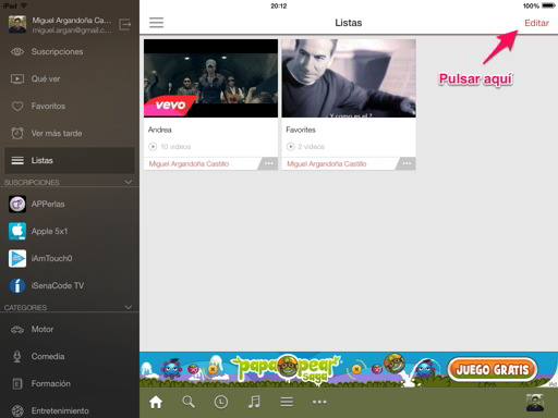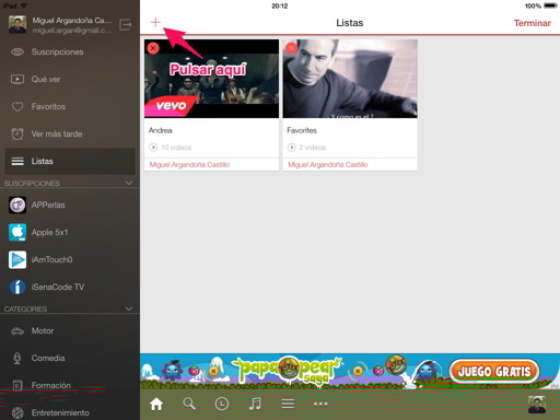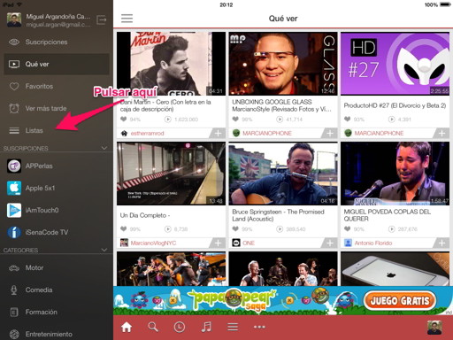 En primer lugar debemos instalar esta fantástica app, que la podremos encontrar totalmente gratis en la App Store. Una vez descargada, accedemos a ella e iniciamos sesión (nuestra cuenta de Gmail o Youtube).