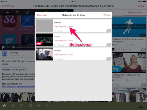 Ahora ya tan solo queda elegir la lista que habíamos creado, que en nuestro caso es «APPerlas», por lo tanto será esta la que seleccionemos.