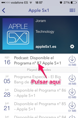 Una vez instalada, accedemos a ella y buscamos nuestros programas favoritos. En nuestro caso, hemos elegido el de nuestros compañeros Apple 5×1. Por lo tanto, nos dirigimos al podcast que queremos añadir y pulsamos sobre el.