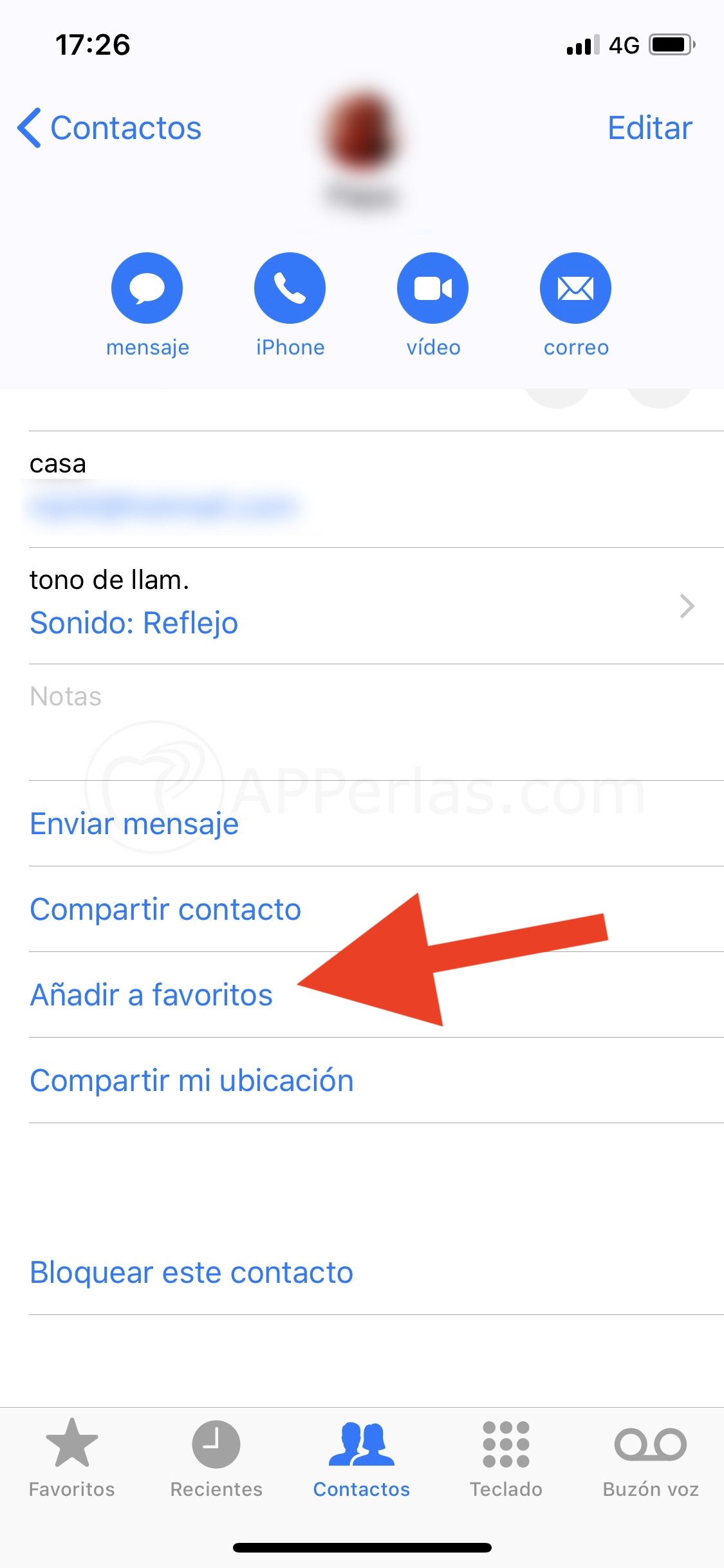 Para esto volveremos a meternos en contactos y elegiremos a la persona que queramos poner como favorita en el teléfono de nuestro iPhone, y seguir los siguientes pasos: