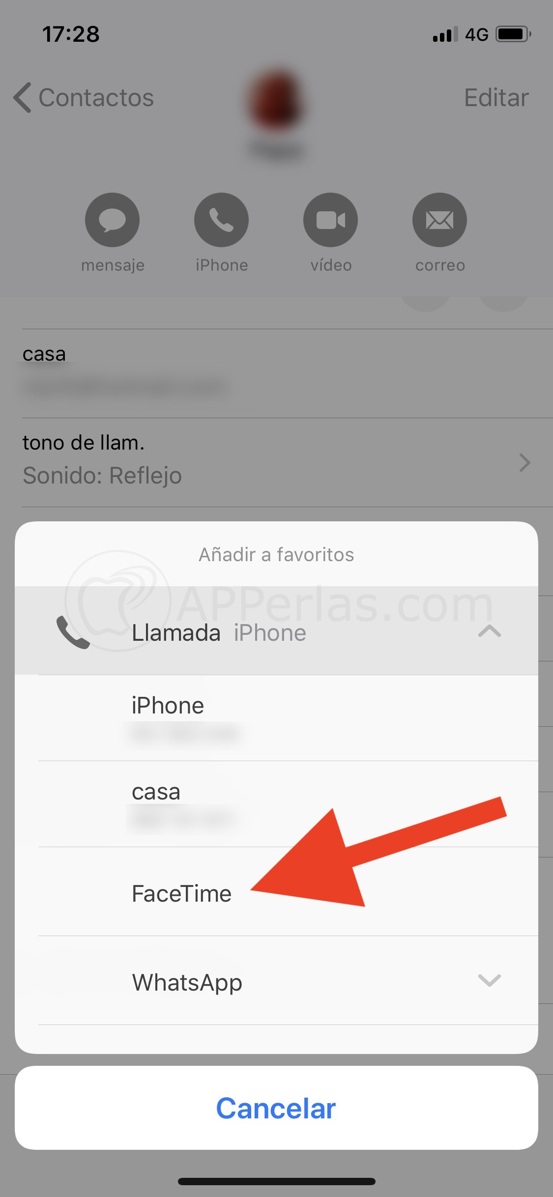 Pero si pensáis que es una manera bastante rebuscada para llamar a un contacto gratis… ¿Por qué no ponéis la llamada por FACETIME a esa persona en vuestros favoritos y así poder llamarla gratis de una manera más directa?
