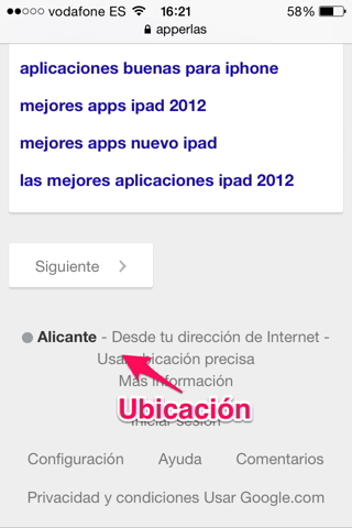 Ahora si nos dirigimos al buscador una vez más, veremos como ya no aparece nuestra ubicación.