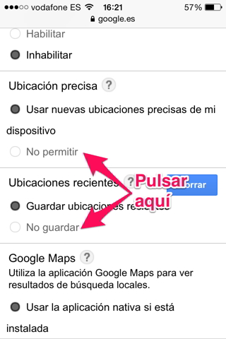 Debemos desmarcar ambas opciones, de esta forma desactivamos la localización en Google.