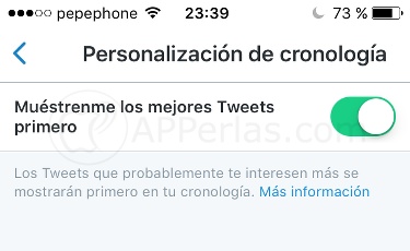 Desde la app oficial de Twitter ya podemos configurar nuestro timeline para que aparezcan los mejores tweet en el primer lugar.