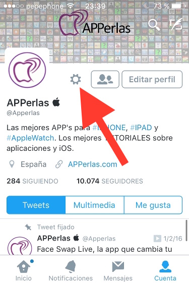 - Accedemos a nuestro perfil de twitter desde la app oficial de esta red social.