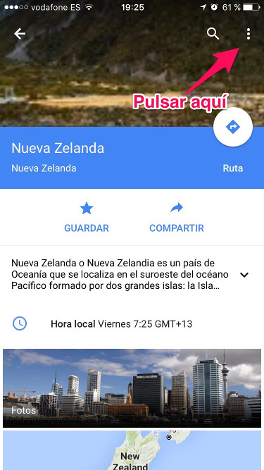 Es por eso que nosotros hemos hecho el ejemplo con «Nueva Zelanda». En primer lugar buscamos la ciudad que queremos descargar y una vez la hemos encontrado, pulsamos sobre el nombre de la ciudad que nos aparece en la parte de abajo, desde la cual podemos ver imágenes de la misma, el tráfico, la temperatura…