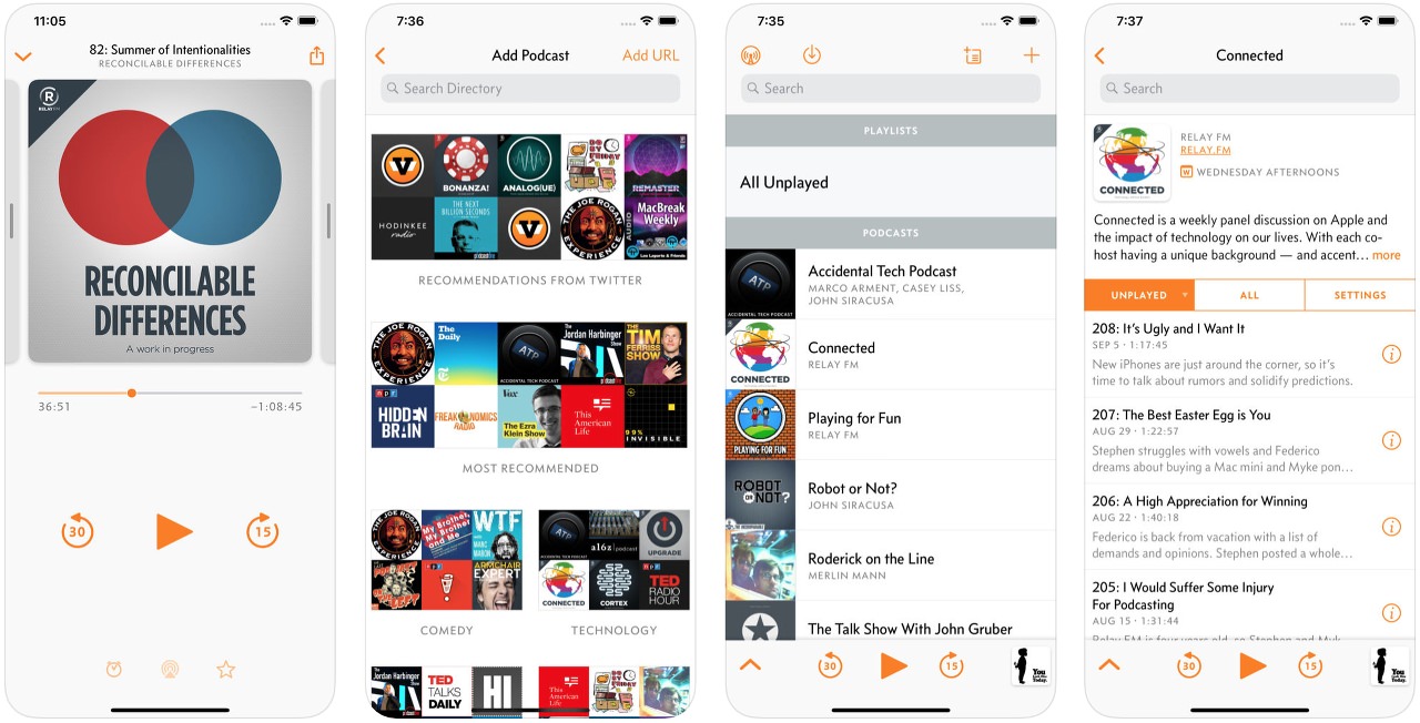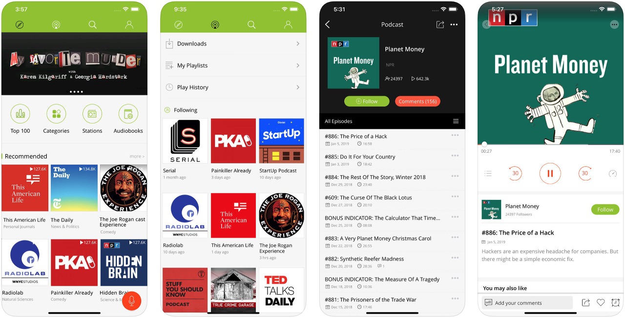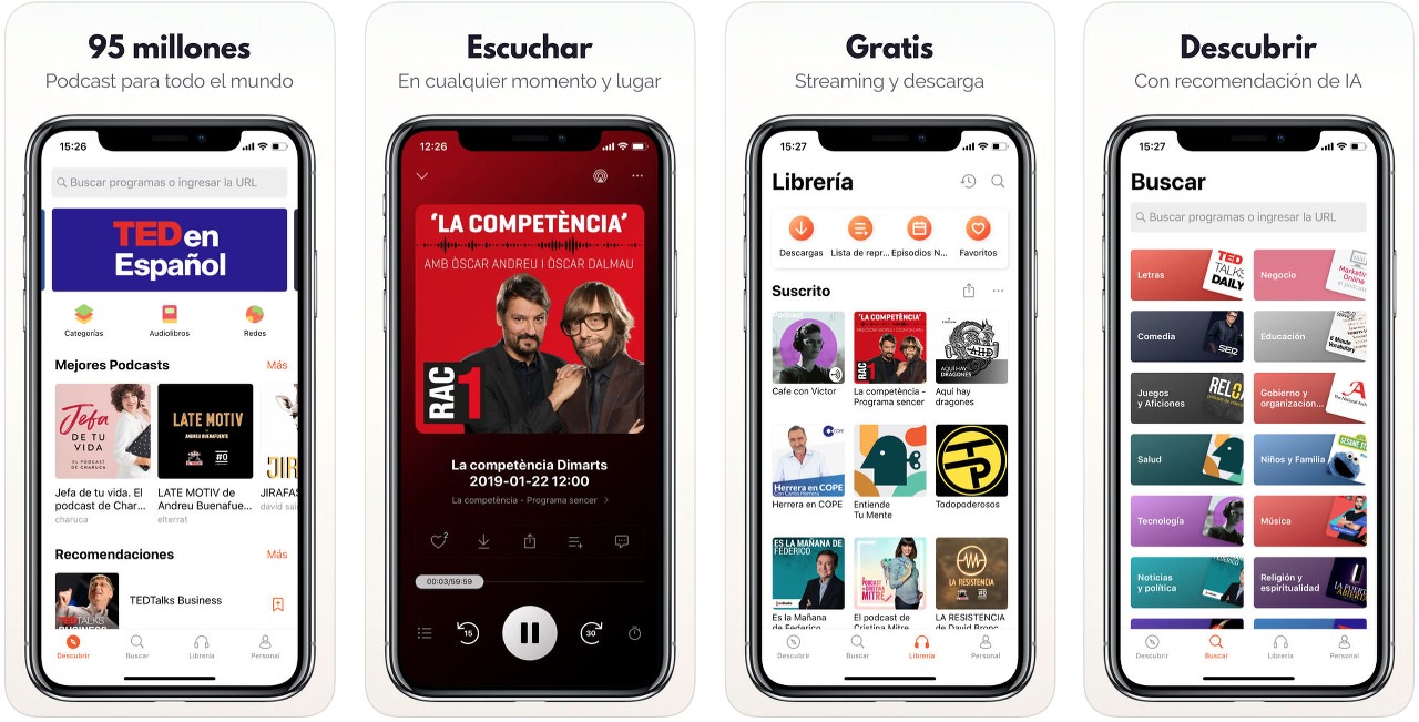 Es la aplicación de podcasts más descargada en países como EE.UU. . Leyendo las reseñas que sus usuarios dejan en la App Store, nos podemos hacer a la idea de lo buena que es. Nosotros la hemos probado y la verdad que es de las mejores que hemos testeado nunca. Una muy buena elección en el caso de que te quedes con ella.