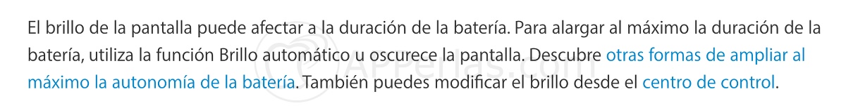 Este consejo para ahorrar batería que da Apple, nos anima a activar la opción brillo automático para que la pantalla vaya cambiando el brillo según el nivel lumínico que tengamos en cada momento. Cuando tenemos mucha luz, el brillo de la pantalla aumentará y cuando tengamos poca, el brillo disminuirá.