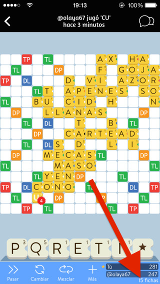 Una vez aceptado, nos aparecerán las letras que quedan por aparecer en el tablero y que, sabiendo que no quedan fichas por salir, tendrá nuestro rival.