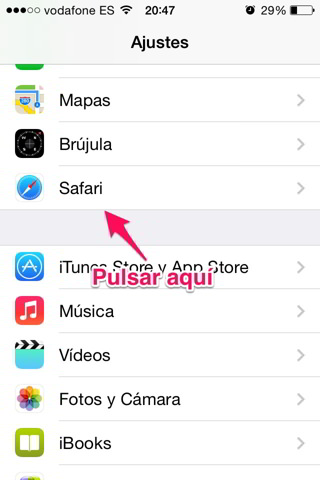 Por lo tanto, accedemos a los ajustes. Una vez dentro, debemos dirigirnos a la pestaña «Safari», que se encuentra en la parte de abajo de este menú.