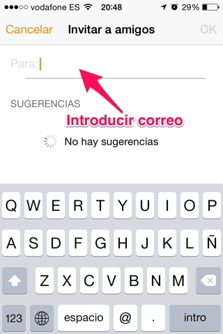Ahora entraremos en una nueva pantalla, en la que tenemos que poner el correo con el que está registrado nuestro amigo, este correo es su ID de Apple, por lo que debemos pedirle a nuestro amigo que nos lo facilite para poder registrarlo en la app.