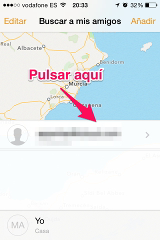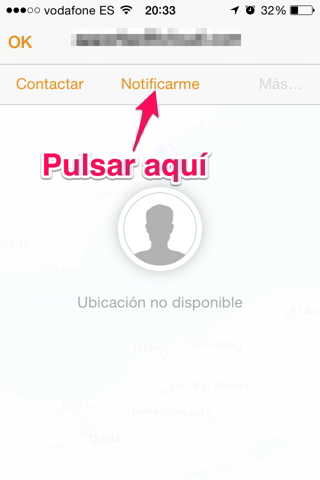 Una vez hecho esto, llega la hora de recibir notificaciones con la ubicación de tus amigos, para ello, pulsamos sobre nuestro amigo, familiar…del que queremos recibir una notificación.