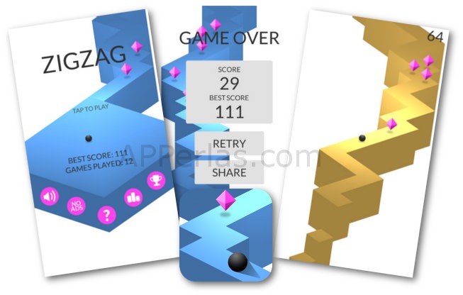 Sabéis que somos amantes de los juegos simples y adictivos que hay en la APP STORE y esta APPerla que hemos encontrado encaja en nuestro gusto por este tipo de juegos. ZigZag es un juego que pondrá a prueba nuestros reflejos y que, seguro llegará a desquiciarte. Parece sencillo a priori, pero en cuanto te pones a jugar te das cuenta que tanto los reflejos como la concentración son importantísimos para llegar, con la bola, cuanto más lejos mejor.